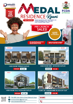 ₦5,500,000 Pre launch sales medal residence kyami is located opposite army estate and sharing boundaries with urban shelter and federal mortgage house kyami 150sqm price n5 5m building type 3 bedroom terrace 250sqm...